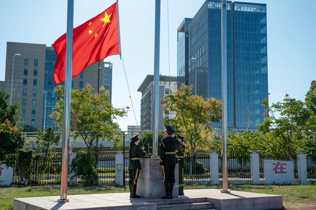 五星红旗冉冉升起,大会在雄壮的国歌声中正式拉开帷幕。