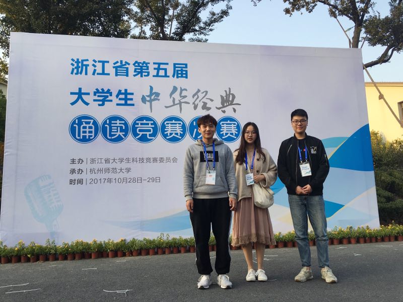 10月28-29日,浙江省第五届大学生中华经典诵读竞赛在杭州师范大学举行,我校4名参赛选手表现优异,取得了3个二等奖和1个三等奖的好成绩。