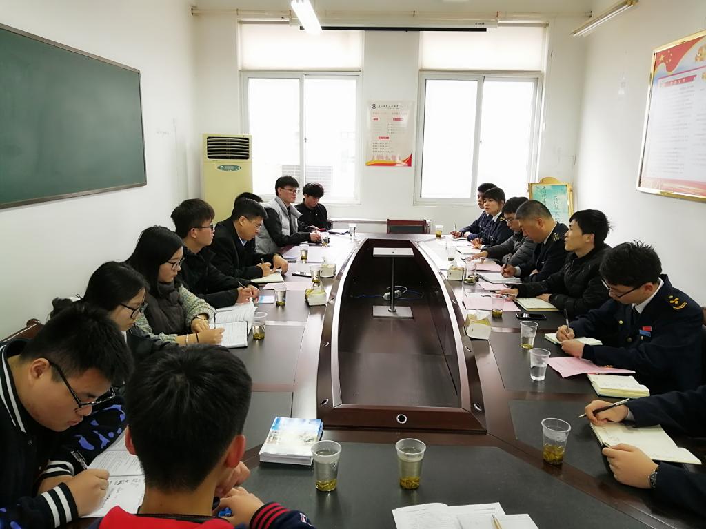 韩开封向郑忠义介绍了航海工程学院在学生管理的实施方法和准军事化的主要情况;学院分团委负责人李军介绍了分团委学生会的组成及相关职能,为石油化工学院提出了一些建议;分团委学生会代表们也从工作情况讲述了学生会工作内容;双方学生代表深入交流了检查制度、社团活动、内部建设、微信平台搭建等情况。郑忠义就寝室检查和学生会工作开展等提出了几个具有针对性的问题,表示要吸收优秀做法和经验,提高石油化工学院的自身建设。