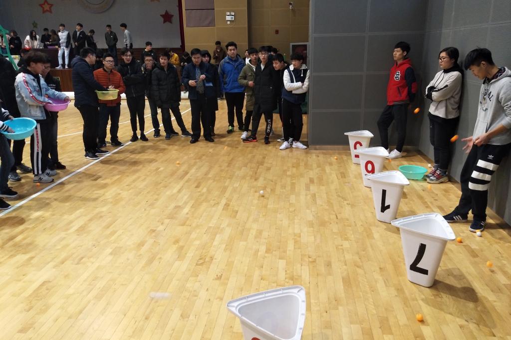 本次趣味运动会的投乒乓球入桶、吹气球、两人三足赛跑、水里夹弹珠、篮球技巧赛、拔河比赛等六大趣味项目都是学院团学干部自主策划的,每个同学都参加了一个以上的项目,大家情绪高涨,笑声不断;令人称奇的是,两人三足的冠军竟然被唯一的一对女选手摘得。最后举行的两个班级拔河比赛,将趣味运动会推向了高潮。