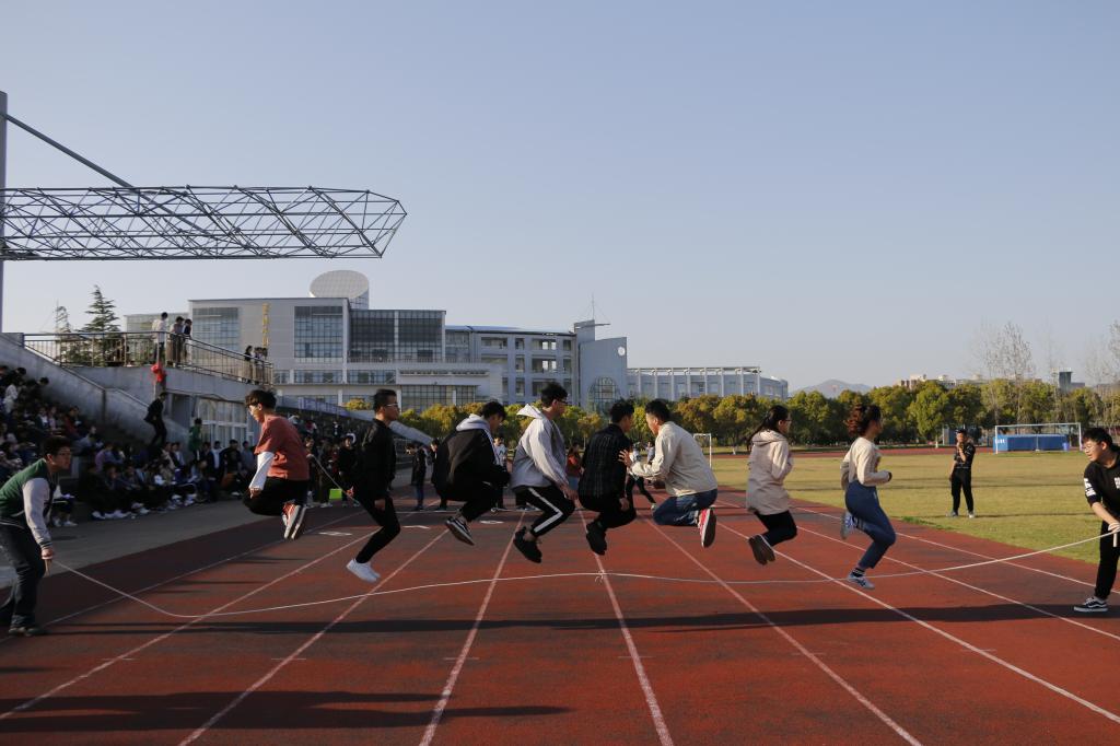 “送鸡毛信”是每班派出4名代表,以4乘100米接力的形式比赛。听到比赛开始的信号后,记熟由抽签决定的6位数字,记熟数字后进行百米跑,用6位数密码代替接力棒,最后一位回到终点后背出对应的数字,准确无误之后停表。“生生不息”是以10人一小组跳长绳的形式比赛。在同学们熟悉的运动中增添小游戏,场上的运动员奋力拼搏,场下的观众高声呐喊,春日的田径场充满了欢声笑语。在这一刻,同学们尽情享受运动带来的快乐。
