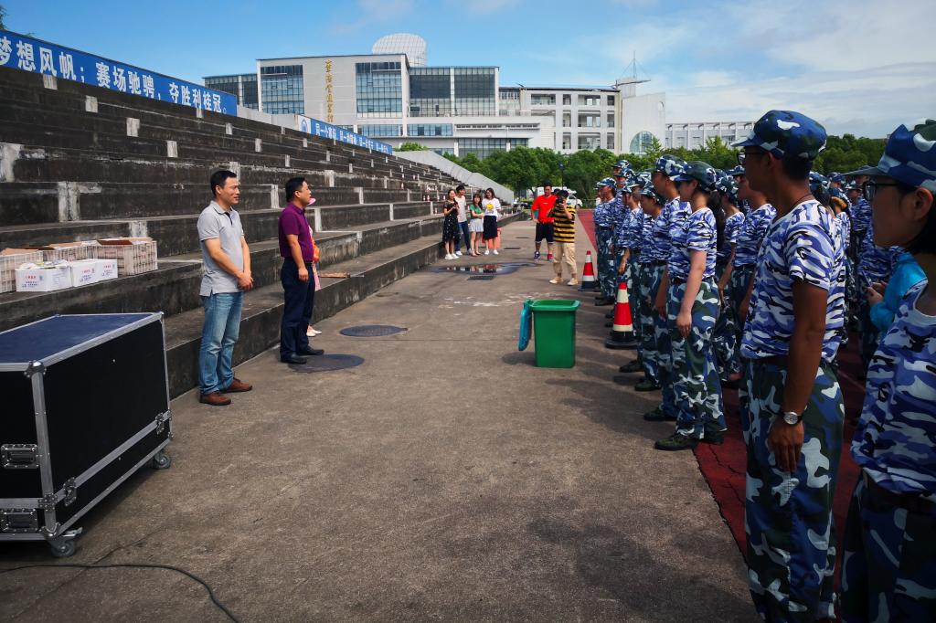 9月18日上午,海洋旅游学院党政班子成员与辅导员们一同来到军训场地,慰问承训教官和参训学生。