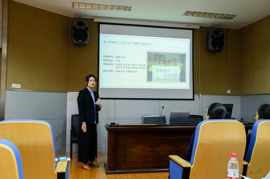为深入贯彻团中央《关于进一步加强和改进大学生社会实践的意见》和教育部《关于进一步加强高校实践育人工作的若干意见》的文件精神,引导广大青年学习宣传党的十九大精神,深入学习习近平新时代中国特色社会主义思想,充分发挥社会实践作为加强和改进大学生思想政治教育重要途径的优势,10月31日,校团委在国际海员培训楼报告厅举行了2018年暑期社会实践分享会。校团委书记徐盈、二级学院团委书记、各二级学院学生代表以及各实践队队员参加本次分享会。校团委和各二级学院的7位老师担任评委,来自校团委和6个二级学院的25支团队通过PPT、视频、现场讲解相结合的形式,展示了团队项目选题、组织实施、影响效益、总结体会等,生动展示了今年暑期“三下乡”社会实践活动的收获与成果。