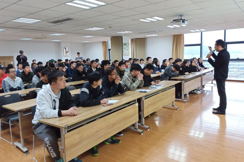 王玮与同学们分享了他从军、就业、创业三段人生经历,初次创业失败时的彷徨,如何凭借坚持不懈的毅力、认真务实的态度再次创业,他建议同学们在创业途中要注重团队建设、关爱员工、坚定信念,并始终抱持感恩、真诚的人生理念。王玮创办的舟山市爱比家政有限公司注册资本150万元,现有员工数180人。他曾多次获得舟山市创新创业大赛奖项,担任舟山市群岛新区青年创业者协会理事、普陀军创园区党支部书记。