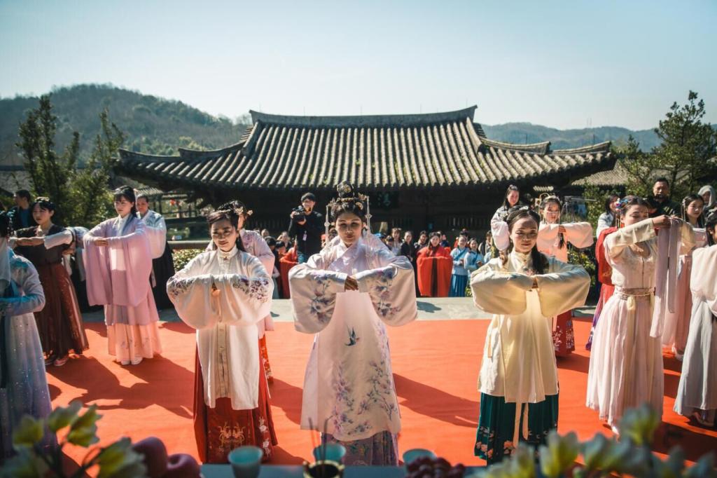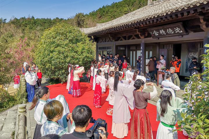 一大早,国学社的志愿者们就来到沈院布置会场,待穿着各色汉服的国学爱好者们陆续来到现场后,社员们也换上汉服和参加活动的市民们一起,开展了敲击空鼓、传统茶艺“仿宋点茶法”学习、编织花环、写祝福彩带祈福等活动。各种传统习俗体验让前来参加活动的市民们更加深入了解了我国传统文化。(图文/林芷伊)