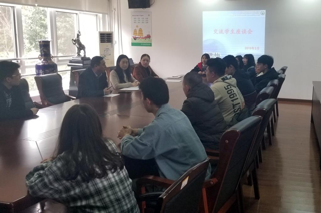 3月27日,学校召开在交流学生座谈会。教务处长叶明君、相关二级学院副院长、副书记以及来我校交流学习的19位交流生参加了座谈会。
