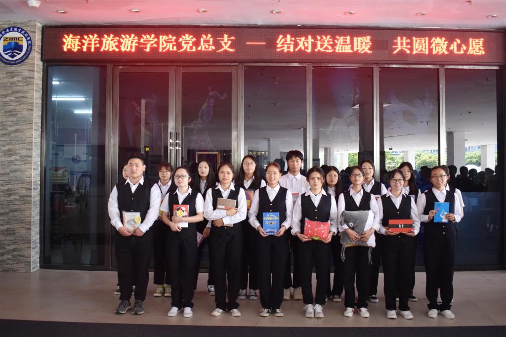 5月22日下午,海洋旅游学院50名党员教师和结对学生汇聚在图书馆一楼,举行海洋旅游学院党总支“结对送温暖 共圆微心愿”结对帮扶仪式。