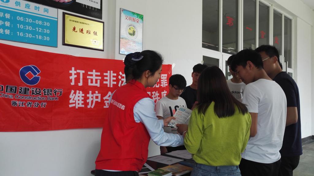 为积极教育引导在校学生增强金融风险防范意识和自身保护意识,计财处牵头联系中国建设银行定海支行工作人员于5月29日走进学校,为学生们宣传金融安全知识。
