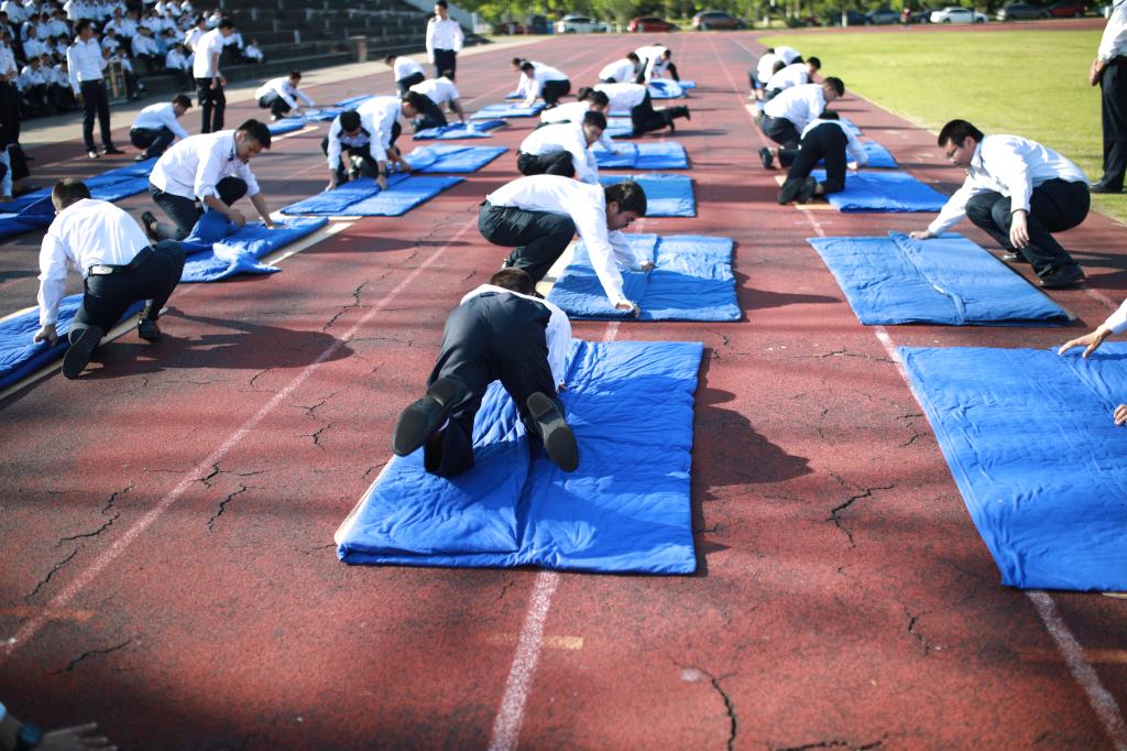 5月29日下午,航海工程学院在田径场隆重举行第十四届准军事化技能大比武。
