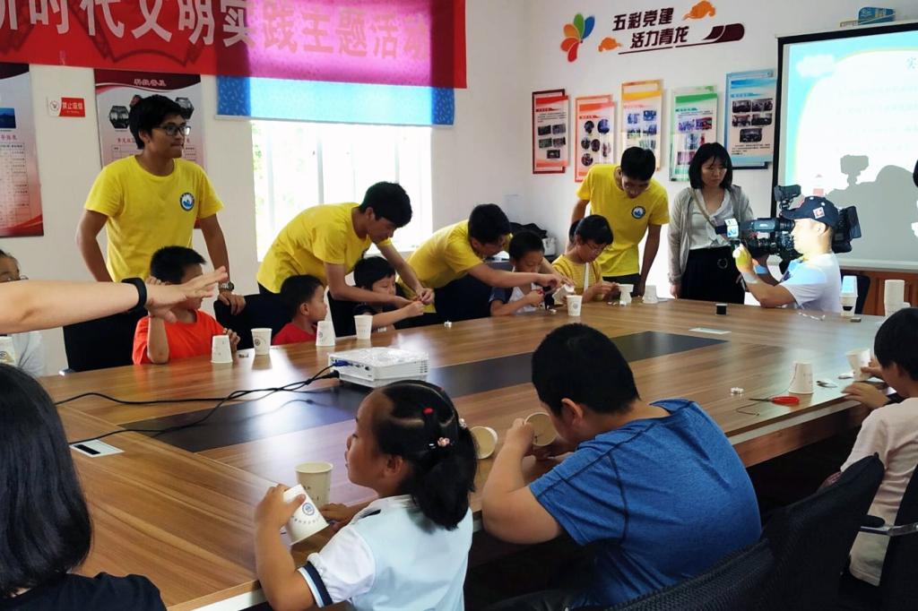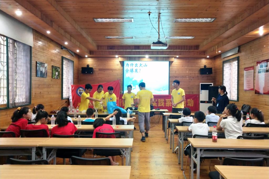 在志愿服务活动中,志愿者们发挥了学生社团在文化、科技、艺术、体育等方面的特长,结合原有的品牌活动“小实验、大智慧”科普大讲堂,为暑期春泥课堂带去了“国学浸润人生故事汇——你不知道的诗人故事”、 “小实验、大智慧”科普讲堂——纸杯旋转灯+吹不灭的蜡烛、 “小实验、大智慧”科普讲堂——迷你潜水艇+火山喷发、个性化手工——神奇的纸片+国粹脸谱扇、神奇动物在哪里——表演体验课这五项内容丰富、寓教于乐的互动课堂,锻炼了孩子们的动手能力和创造力,为干览镇的孩子们带去了一个不一样的暑假。(图文/林芷伊)