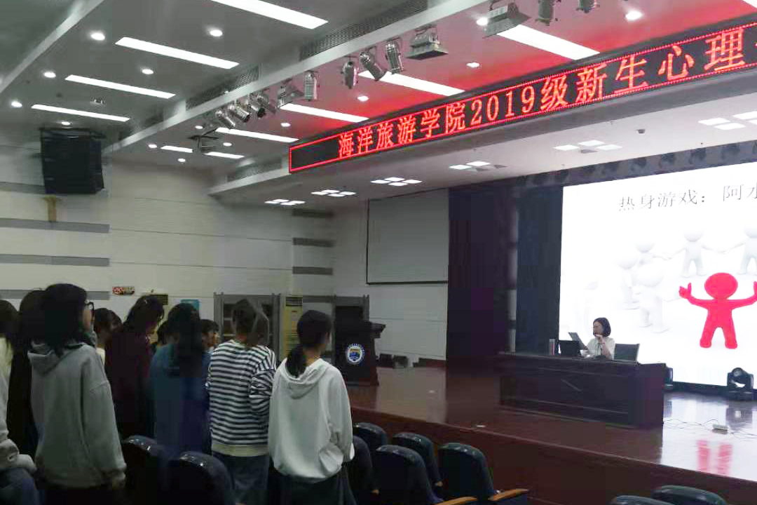 10月15日晚,海洋旅游学院在图书馆四楼报告厅举办了“大学生从心开始”主题心理健康教育健康讲座,400多名2019级新生参加讲座。