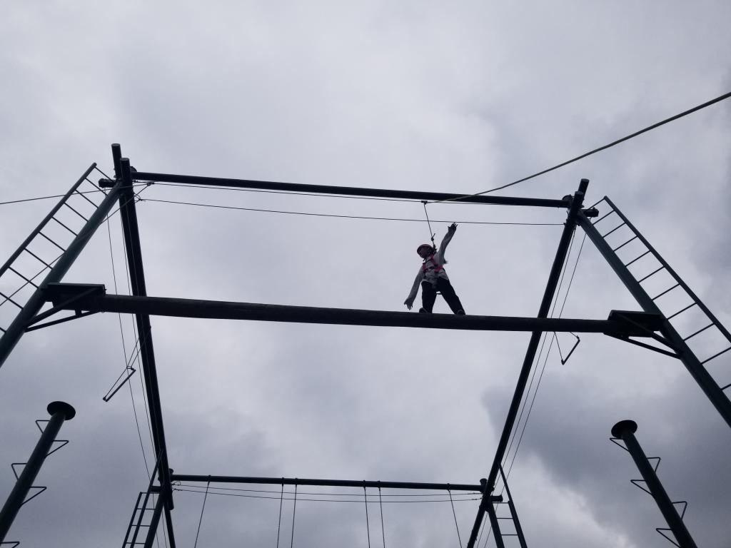 活动开始后,各位学员进行了团队训练。之后,进行随机分组将全体学员分开,归入各自团队,并通过高空独木桥、勇闯攀岩等游戏项目对各组进行计分。