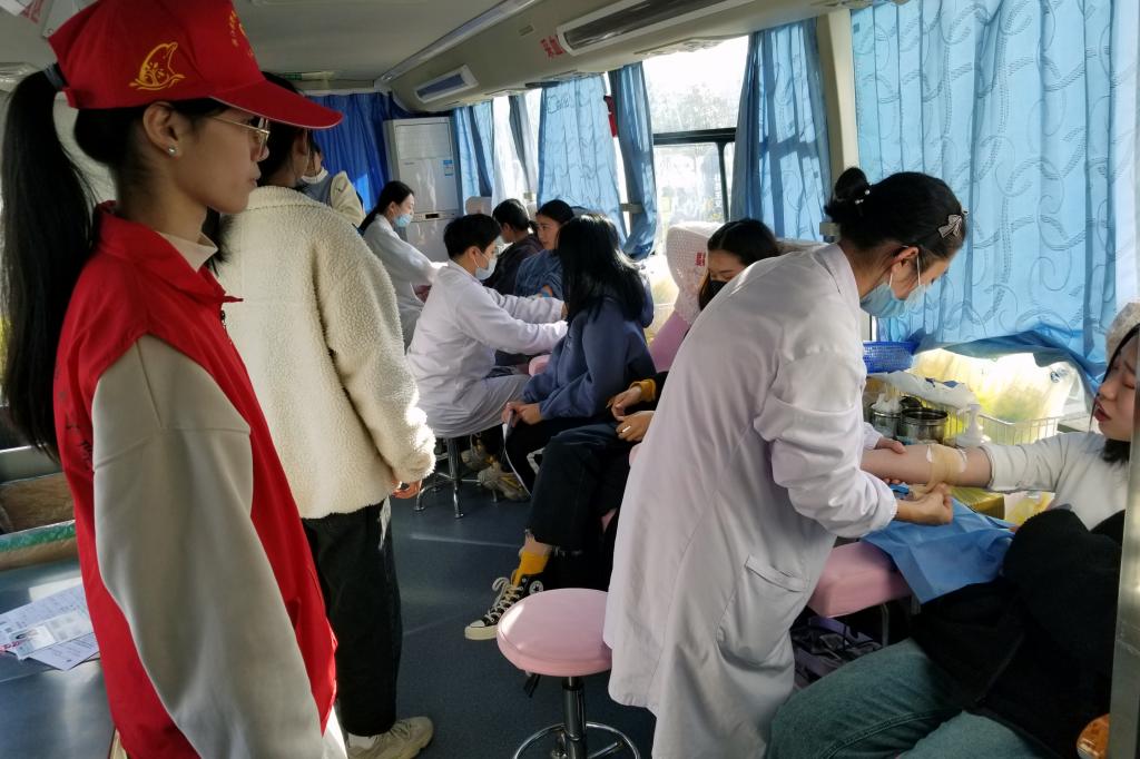 无偿献血是无私奉献的真情流露,每一滴血液,都是爱心的传递。天气晴朗,师生们的献血热情高涨,填表台前早早就排起了长长的队伍,师生们按照医务人员的要求认真填表、血样采集、身体检查、化验、抽血……所有流程都在校青年志愿者总队成员的组织引导下井然有序进行。一张张青春洋溢的脸庞,彰显了师生们勇于奉献、敢于担当的精神面貌,殷红的鲜血顺着导管流进了储血袋,师生们的脸上洋溢着温暖的微笑,为自己献出的爱心与热情而感到自豪。在北风呼啸的天气,大家用实际行动将滴滴血液汇入生命长河,温暖了这个寒冷的冬日。本次共有208名师生参加本次献血活动,共计献血54350毫升。