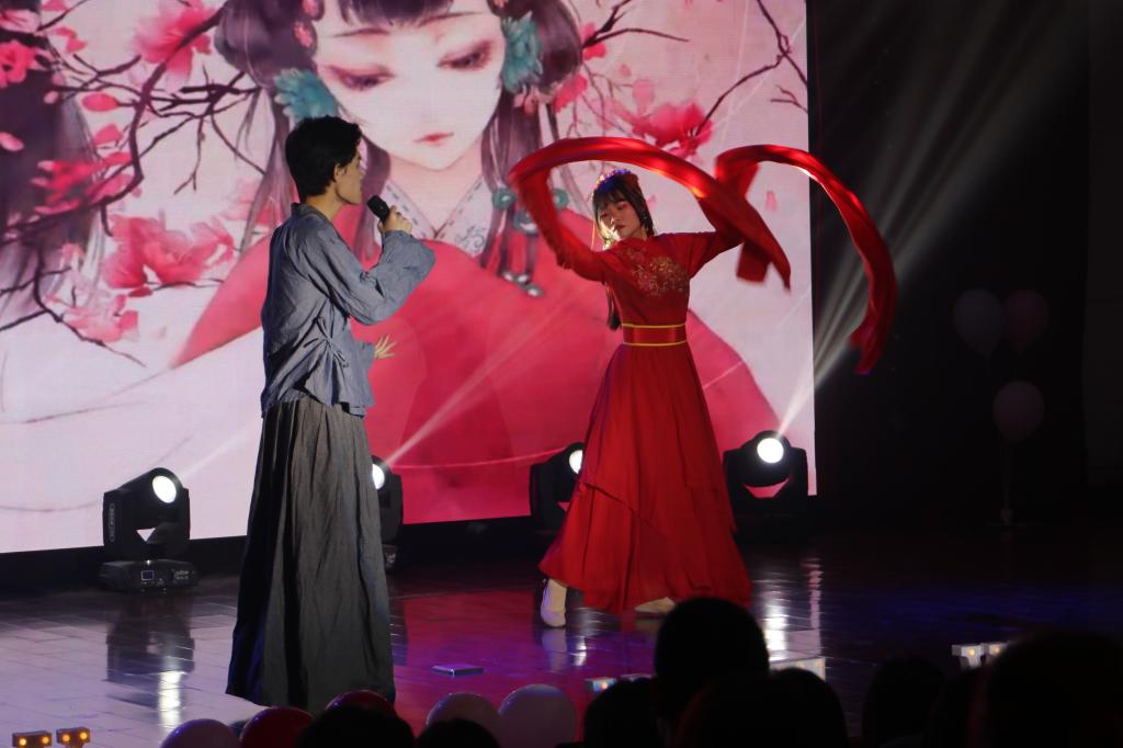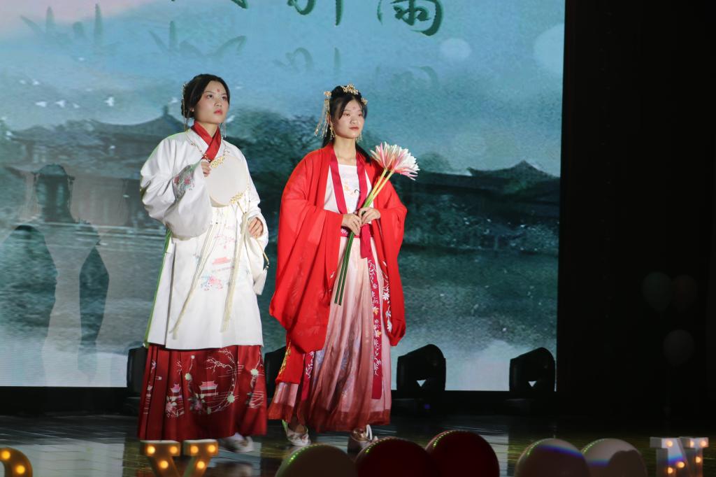 晚会在乌克兰留学生的视频祝福中拉开序幕。诙谐幽默的小品《面试》为即将走上实习岗位的2017级同学们送上了祝愿;由2019级英语专业同学演绎的舞蹈《Danceholic》带给观众们极为享受的视觉盛宴;歌伴舞《牵丝戏》以及汉服走秀表演《二十二桥枫别雨》等节目散发着浓浓的中国风;诗朗诵《不忘初心 牢记使命》则将晚会气氛推向了高潮。
