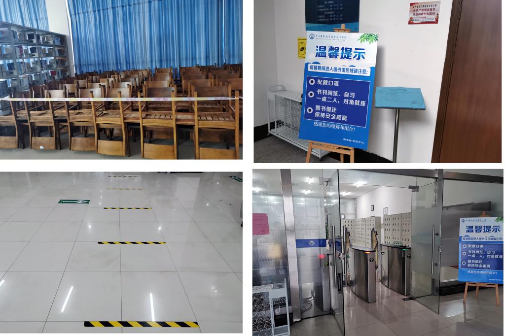 舒伟权多次带队检查各项防控措施,督导图书馆开放期间一线服务举措落实情况,确保返校后图书馆服务环境安全有序。图书馆采取了多项防控措施,如完善空间,减少馆内座位数量,实行限流开放;调整座椅,增大座位间距,确保进馆读者相互间的安全距离;制作各类防疫地标、提示牌、隔离带并布置到位;加大环境卫生整治,保持室内外环境卫生整洁,做好书库、阅览室等公共开放区域的消杀工作并及时留下记录,加强对读者的防护,为读者安全有序入馆学习阅览奠定基础。
