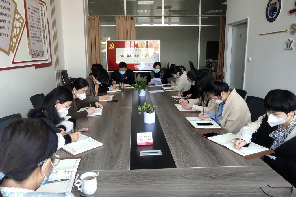 会议第一议程是集中理论学习,在会前学习党的二十大精神、省委十五届二次全会和市委八届二次、三次全会精神基础上,全体党员在会上认真学习了学校党委书记苏为泽《加强师德师风建设,推进学校高质量发展》的讲话精神。