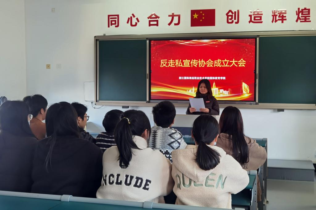 反走私宣传协会由学生自愿联合发起,在国际教育学院分团委监督,指导老师的指导下,经过初期筹备,于3月13日召开了成立大会。大会通过了《反走私协会(社团)章程(草案)》,选举了反走私协会第一届社长余婷同学。