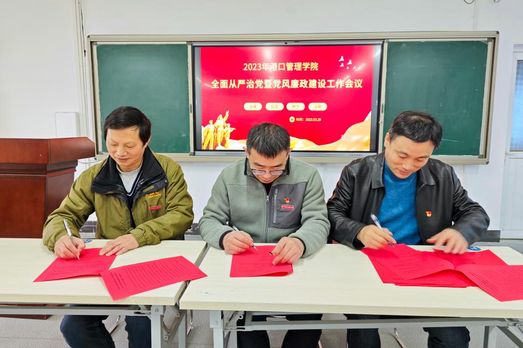 最后,吴平波书记对学院2023年全面从严治党暨党风廉政建设工作提出三点要求:一是党政班子成员要认真履行一岗双责,率先垂范;二是全体教师要把好小微权力关,为人师表;三是要把党风廉政建设与师德师风建设一同推进,持之以恒推动全面从严治党向纵深发展,为学院高质量发展保驾护航,营造干事创业良好氛围。(港口管理学院)