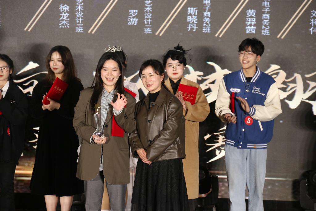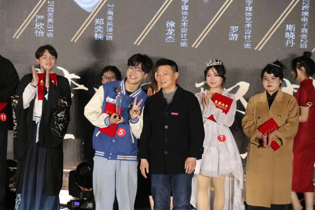 经过评委打分,最终2022级数字媒体艺术设计1班徐龙杰、2021级跨境电子商务班叶燕琳和2021级商务英语2班蒋昳婷分别获得冠、亚、季军。