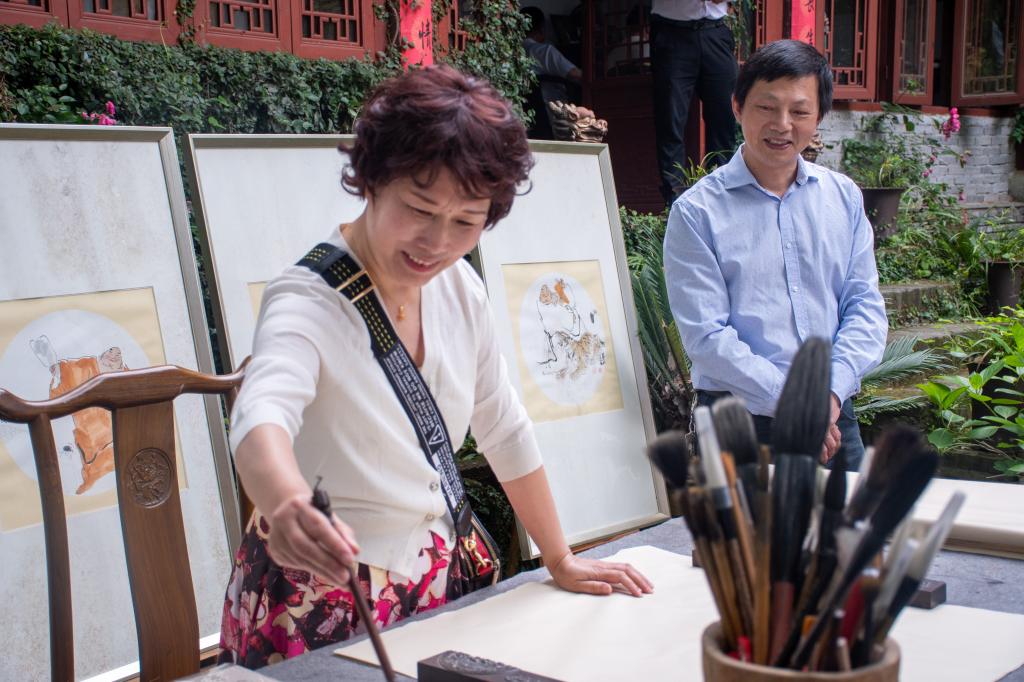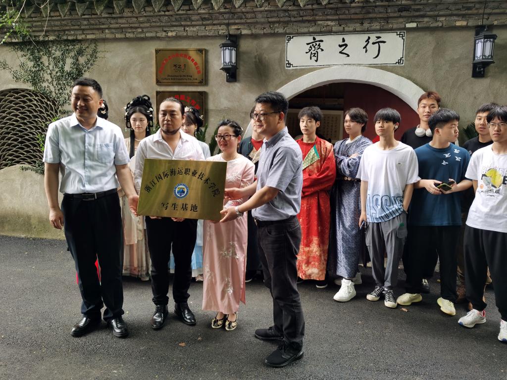 当天,数字媒体艺术设计专业的同学们集聚齐之行山庄,举行了校外写生基地挂牌仪式。校党委委员、副校长夏志刚与现代港口贸易学院院长王贵斌共同参与挂牌,并聘请齐之行山庄负责人吴齐行担任现代港口贸易学院数字媒体艺术设计专业兼职教师,以进一步培养学生书画研修能力,提高学生艺术修养。