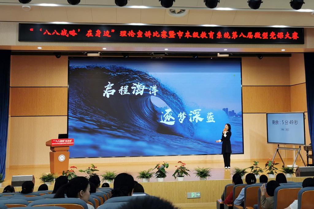 5月26日上午,在舟山第一小学北校区举行的“‘八八战略’在身边”理论宣讲比赛暨市本级教育系统第八届微型党课大赛中,国际教育学院党员教师陈星蓉代表我校参赛并荣获大赛三等奖。