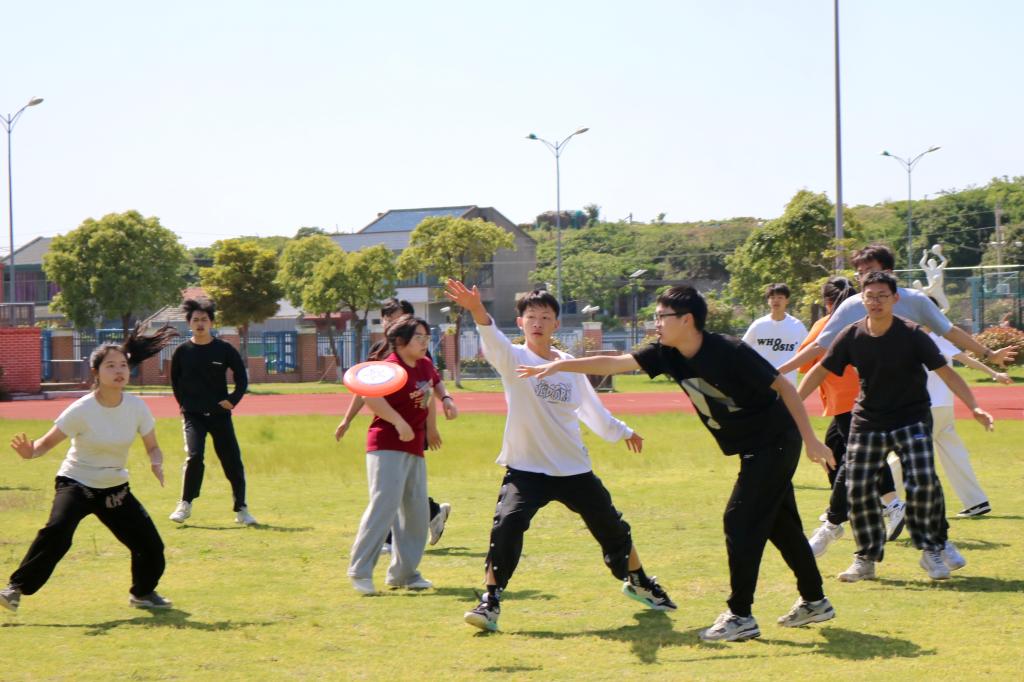 飞盘运动融合了足球、篮球与橄榄球规则特点,兼具休闲性、竞技性和观赏性。本次比赛设为团体赛,共22支队伍,每支队伍组成由五男两女,一共有154位学生参加。5月23日,比赛于岱山校区的操场拉开帷幕。“传盘、起跳、抓盘......”场上的选手们在绿茵草地上穿梭奔跑、默契配合,展示了飞盘运动的魅力,弘扬着“盘不落地,永不抛弃”的精神。