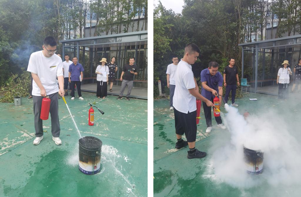 航海工程学院的孙波老师以《实训室消防安全培训》为题详细讲解了实验室灭火器的原理、特点、构造等,并现场演示了干粉、泡沫、二氧化碳灭火器的使用操作方法。参训人员认真学习,并有序使用灭火器进行了现场实操灭火演练。
