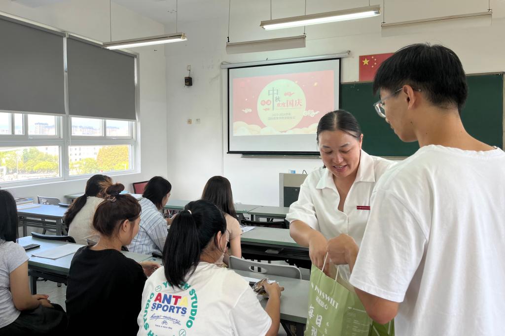 在中秋国庆双节来临之际,为让同学们感受到学院的温暖,9月27日下午,国际教育学院开展了“情满中秋、欢度国庆”送温暖活动。