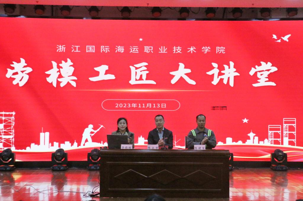 为深入开展学习贯彻习近平新时代中国特色社会主义思想主题教育,贯彻落实党的二十大精神和习近平总书记关于大力弘扬劳模精神、劳动精神、工匠精神的重要指示精神,11月13日,学校“劳模工匠大讲堂”在图书馆四楼报告厅正式开讲。舟山市劳模、舟山市“最美工匠”、舟山市技能大师、千岛工匠陈建军担任主讲嘉宾,校党委委员、宣传部部长陈永芳出席本次活动并向陈建军颁发“劳模工匠兼职辅导员”聘书,马克思主义学院院长郑忠义向陈建军颁发“思政示范课堂兼职教师”聘书。活动由马克思主义学院策划并承办,得到了各二级学院大力支持。