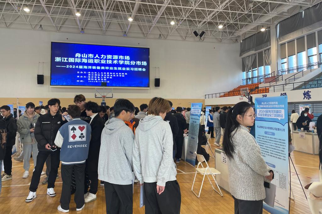 11月18日下午,由舟山市人力资源和社会保障局和我校共同主办,海洋装备工程学院联合国际教育学院共同承办的2024届海洋装备类毕业生就业实习现场招聘会在体育馆举行。海洋装备工程学院领导与参会企业深入交流,了解企业需求,同时引导实习生们转变就业观念,树立“先就业后择业”的就业观,积极投递简历。招聘会上,各企业向实习生介绍了企业文化、招聘信息、晋升路线等就业关注问题,并向实习生发起了诚挚的邀请。实习生们在实习指导老师的指导下,手持精心准备的简历和自荐信,积极与招聘人员交流,主动了解用人单位的情况。现场气氛活跃,实习生们反响热烈。