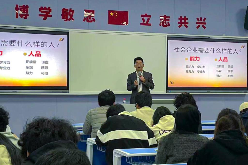 讲座上,周备军先生介绍了舟山都市阳光装饰有限公司的发展概况,以及与学院未来的合作计划。他还结合自身经验,向学生详细讲解了如何正确定位,充分利用校企合作平台,整合自身专业优势,抓住机遇,为未来职业发展做好全面准备。