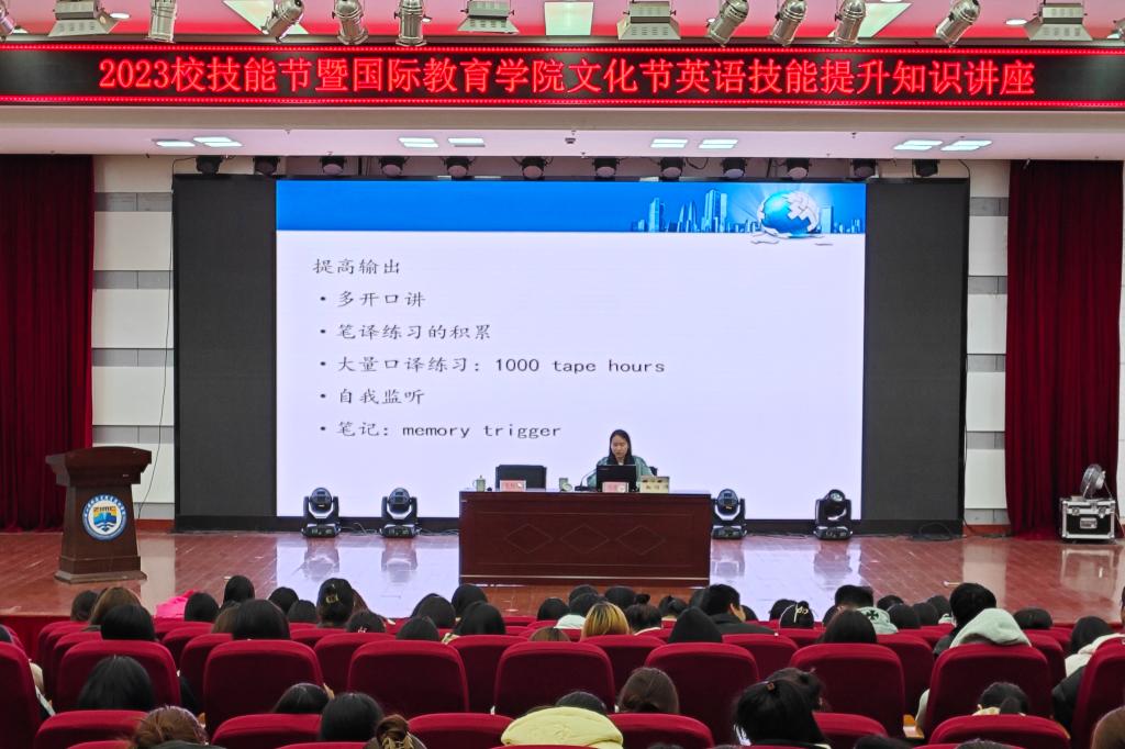 为了提升我校学生的英语学习能力,12月11日,国际教育学院邀请了舟山市外事翻译与服务中心副主任、舟山市翻译协会秘书长沈丹妮老师,在图书馆四楼报告厅作了《口译学习与实际运用》专题讲座。讲座由国际教育学院院长吴旭光主持,学院全体英语教师以及来自全校的515名学生参加讲座。