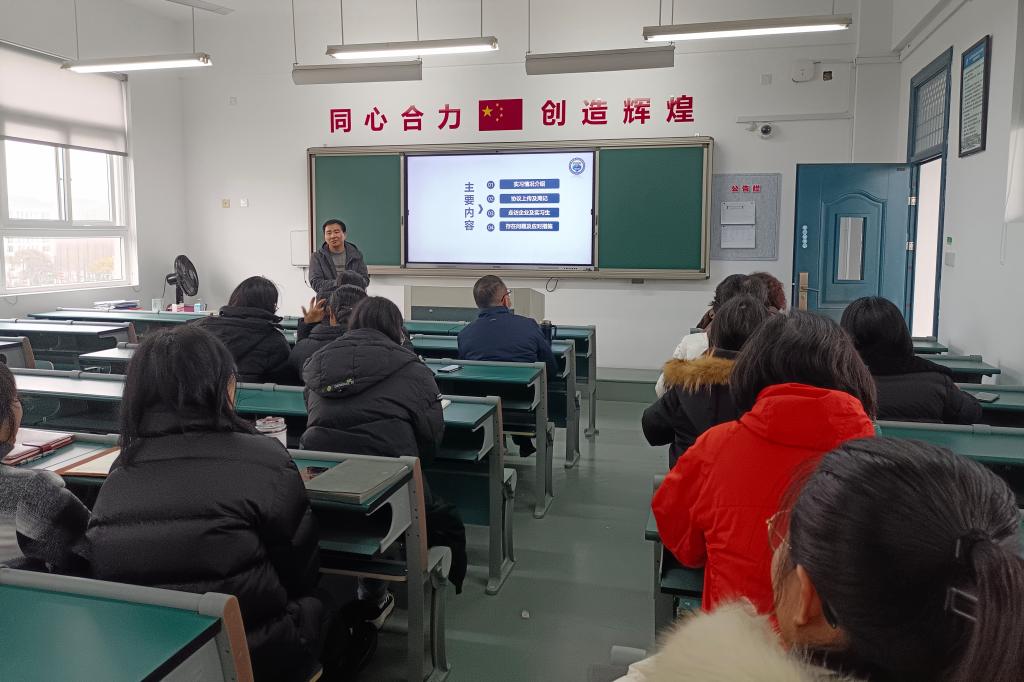 会上,颜天明副院长介绍学院实习特点、协议上传及周记批阅情况及实习走访,分析目前实习存在的安全问题,从做好实习常规、多方协同抓住关键少数、家校企合作提高实习质量等三方面提出对策。