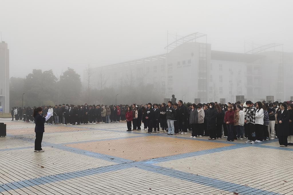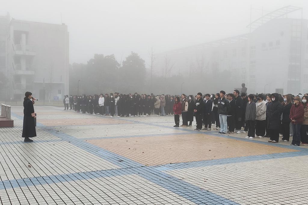 伴随着国歌,五星红旗缓缓升起,大家肃立共唱国歌、行注目礼,共同感受庄严时刻。随后,学生代表郑沁同学上台发言,她向同学们介绍了数字化改革对人们生活带来的巨变,真诚呼吁同学们认真学习全面推进中华民族伟大复兴奉献青春和智慧
