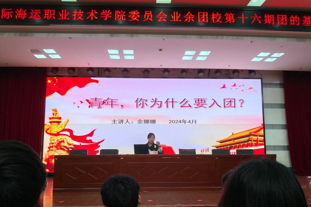 在简短而庄重的开班仪式后,余娜娜为同学们上了一堂生动的团课,她以《青年,你为什么入团》为题,围绕“入团为了什么”“入团的条件是什么”“入团需要做什么”等三个方面为入团积极分子详细讲解了共产主义青年团员的光荣使命和任务。