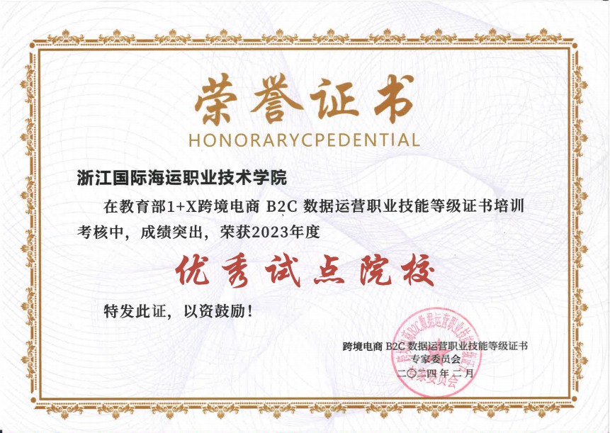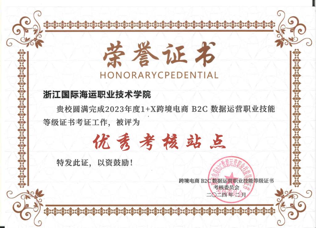 近日,我校荣获了由教育部1+X“跨境电商B2C数据运营”职业技能等级证书培训评价组织——阿里巴巴(中国)网络技术有限公司颁发的2023年度1+X职业技能等级证书“优秀试点院校”及“优秀考核站点”称号。这一荣誉是对我校在1+X试点推进工作中所做出的积极贡献的高度认可。同时,现代港口贸易学院的何伟老师荣获“优秀指导老师”称号,进一步彰显了我校教师团队的专业素养和教育热情。