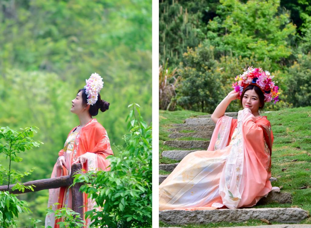 现代港口贸易学院的学生们化身为化妆和摄影达人,为游客们提供颇具特色的汉服簪花化妆和摄影服务。活动采取预约与现场参与相结合的方式,深受游客喜爱,纷纷拿出手机记录下这难忘的瞬间。汉服簪花装扮的游客成为了景区中一道亮丽的风景线,他们穿梭于各个景点,与古朴典雅的景区风格相得益彰。