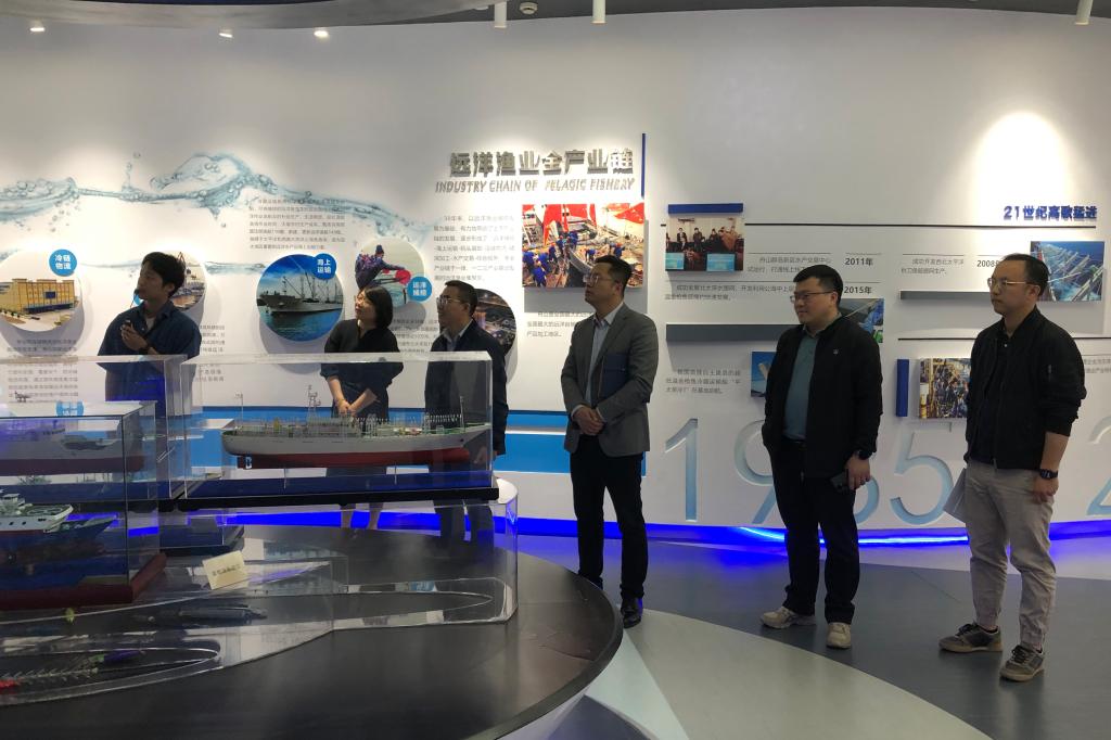 李刚一行首先参观了远洋渔业小镇客厅,听取了关于基地的详细讲解,增进了对远洋渔业产业的认识。