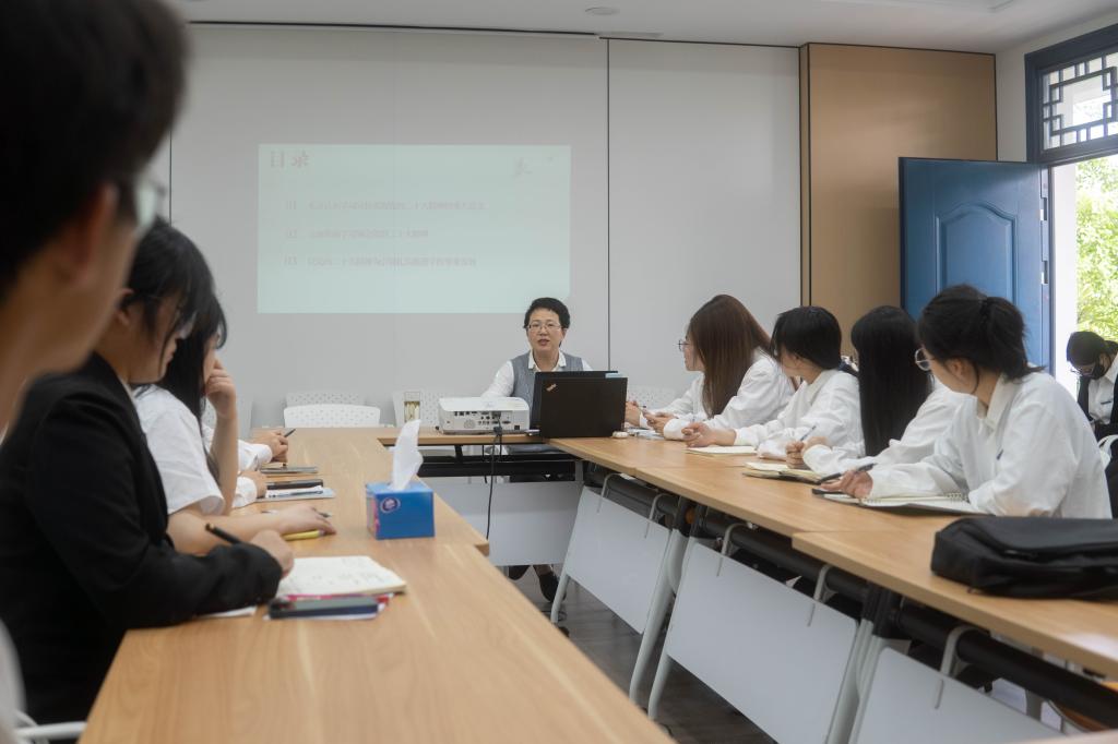 学院党总支书记陈宋芳围绕《中国共产党发展党员工作细则》为同学们详细讲解了入党流程。她希望同学们要加强学习,端正入党动机,在学习和实践中提升自我,还向同学们强调了党纪的重要性,无论是在学习还是生活当中,要有纪律意识和规则意识,做到学纪、知纪、明纪、守纪,加强自我约束,为个人发展打好坚实基础。