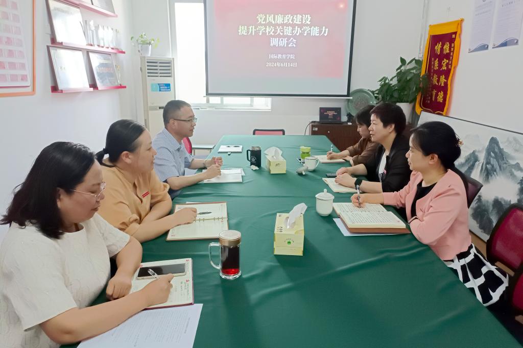 6月14日上午,校党委委员、纪委书记张谷燕到国际教育学院调研指导工作,国际教育学院班子成员及教学团队负责人参加座谈。