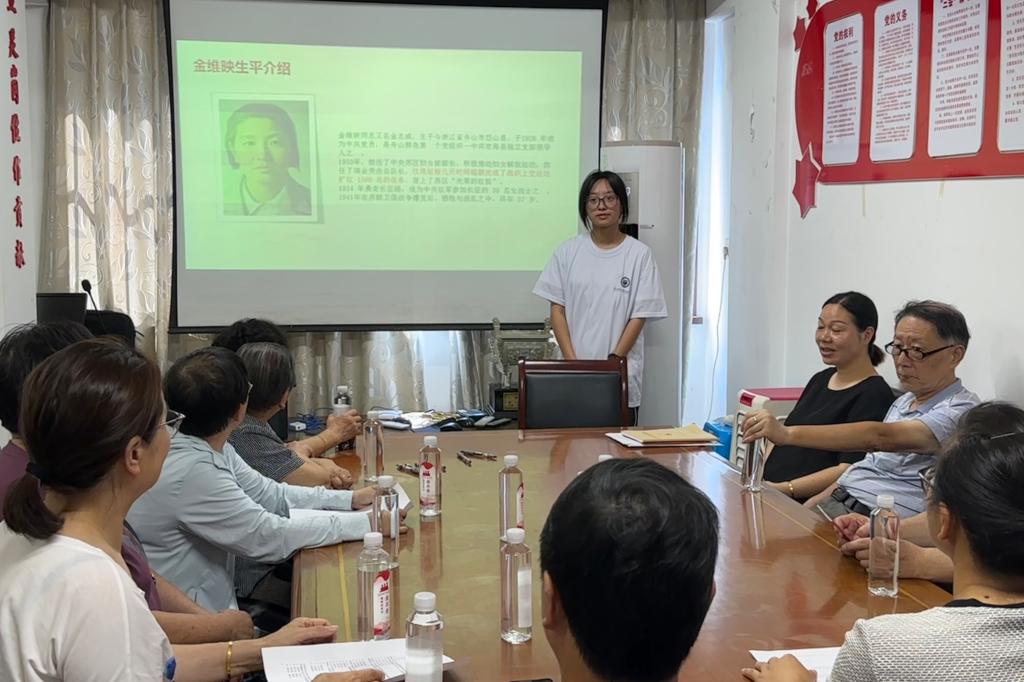 活动中,小分队成员担当起了讲述者的角色。他们用宣讲的形式生动地向翁山社区第一党支部的党员们讲述了金维映在革命斗争中的英勇事迹,展现了她坚定的信仰、无畏的勇气和高尚的品德,深深感染了在场的每一位听众,让大家对老一辈革命家的精神有了更深刻的理解和感悟,也对当下党内进行的对于《中国共产党纪律处分条例》的学习有了更深刻的认识。
