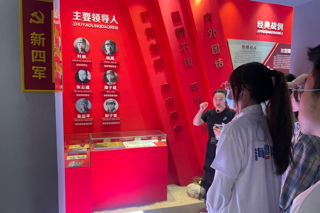在红色传承馆中,一幅幅珍贵的历史图片、一件件真实的革命文物、一段段详实的文字记载,生动地展现了新四军在大渔山与敌人殊死搏斗的英勇事迹。同学们认真聆听讲解员的解说,深入了解了当地人民为了民族独立和人民解放所做出的巨大牺牲和贡献。