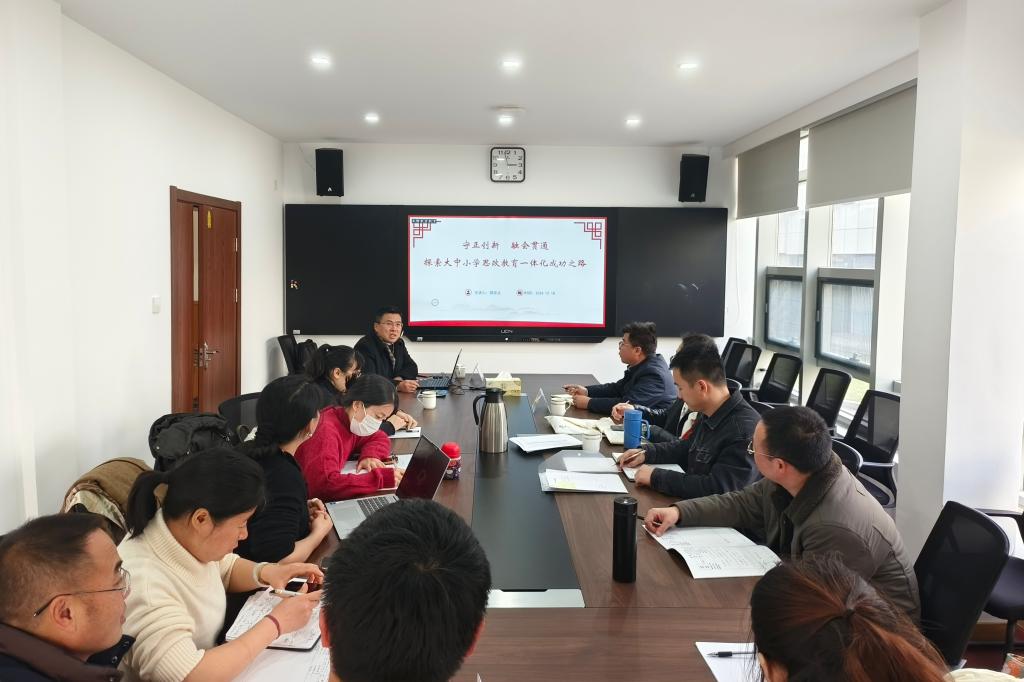 为深入贯彻新时代思政课推进会精神,贯彻2024年全国教育大会精神,推进大中小学思政教育一体化建设,1218日,舟山市大中小学思政课一体化建设指导委员会副主任、市大中小思政教育一体化基地(联盟)秘书长郑忠义应邀前往朱家尖,以《守正创新 融会贯通——探索大中小学思政教育一体化的成功之路》为题,与舟山群岛新区旅游与健康职业学院马克思主义学院的老师们来了一场“思政教育一体化之约”。