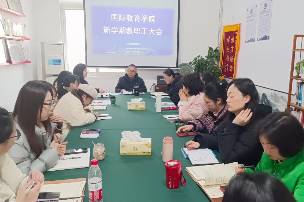 2月19日,国际教育学院在海智楼1501会议室召开新学期教职工大会,会议由学院院长吴旭光主持,全体教职员工参加。