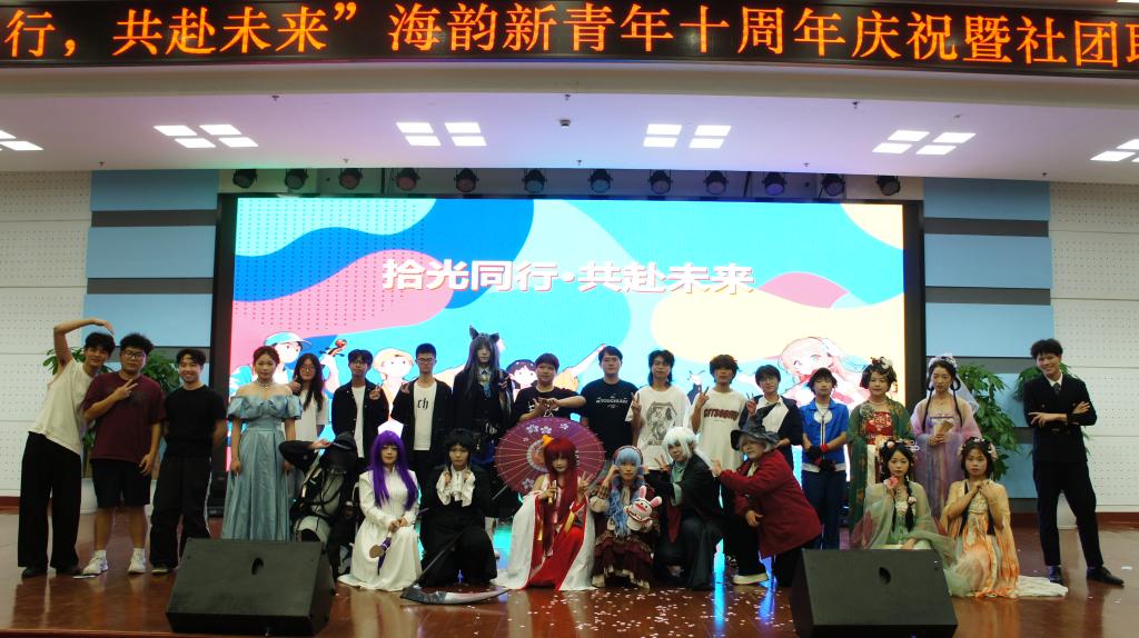 青春逢盛会,奋斗正当时,在校第四次团员代表大会召开前夕,海韵新青年微信公众号迎来了10周岁生日。5月20日晚,校社团管理部组织弦心社、随心家族动漫社、国粹社、街舞社等社团在图书馆四楼报告厅献上了“拾光同行 共赴未来”海韵新青年十周年庆典暨社团联合汇演,400余名学生观众到场观看。