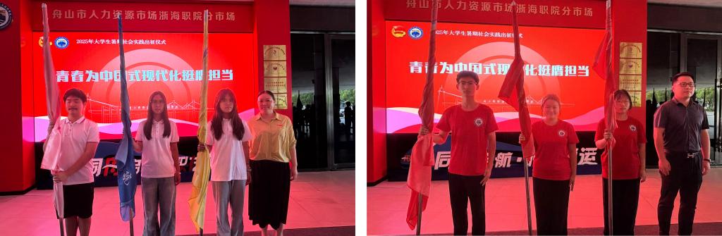 各二级学院党总支副书记为暑期社会实践团队授旗,一面面队旗既承载着躬行践履的使命担当,更昭示着新时代青年以实践丈量山河的壮志豪情。