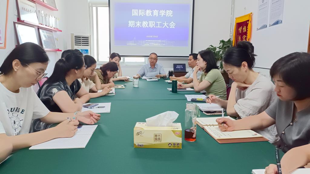 7月4日上午,国际教育学院在海智楼1501会议室召开期末教职工大会,全面总结上半年工作,部署暑期及下半年重点任务。会议由院长吴旭光主持,学院全体教职工参会。