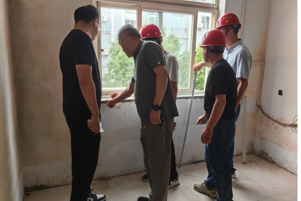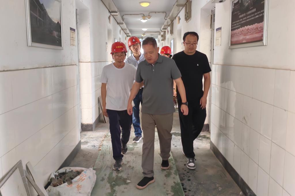 7月14日,校党委委员、副校长曹志斌带领后勤产业处深入学生寝室改造施工现场,实地检查工程进展情况,听取项目汇报并提出指导意见。