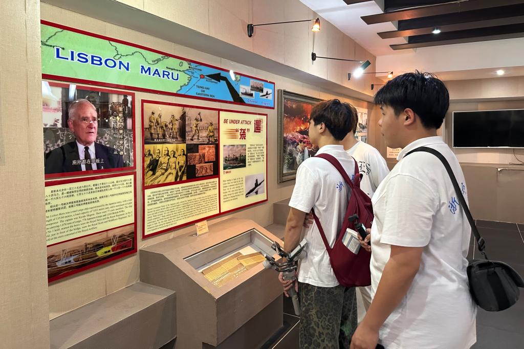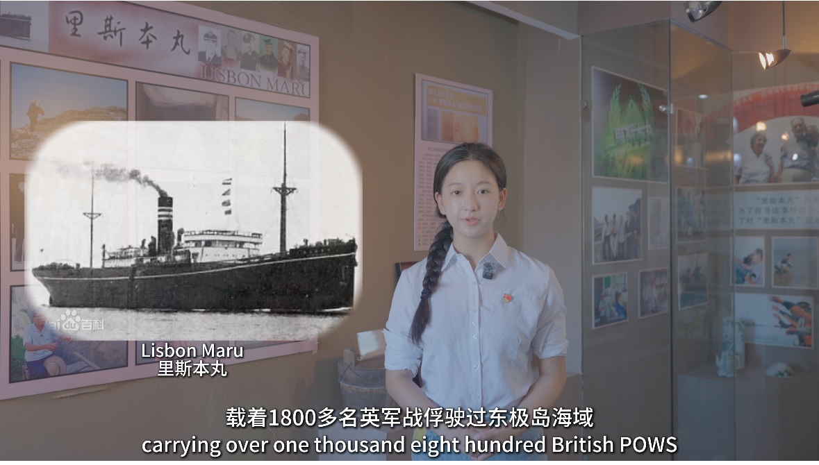 628日,实践团抵达东极岛,参观东极岛历史文化博物馆,收集第一手展陈资料,感知地方历史记忆与官方话语表达方式。1942年,载有1000余名英军战俘的日军运输船"里斯本丸"号在青浜岛附近海域被美军潜艇击沉。日军不但没有实施救援措施,反而关闭船舱大门并对试图逃生的英军进行击杀。危急关头,东极渔民不顾个人安危,多次往返英勇救起300余名落水英军,最终帮助3名战俘成功脱险。这段跨越国界的人道主义救援,展现了战争阴霾下人性的光辉。