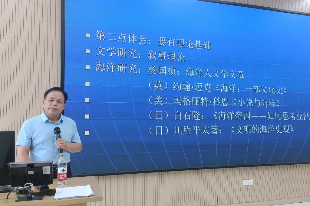 为拓展我校教师人文研究视野,提升教师科研能力,9月18日,学校特邀浙江海洋大学东海学者、舟山市非物质文化遗产保护委员会副主任、舟山文史研究馆馆员倪浓水教授举办了《东海书写——舟山海洋文化研究叙事》专题讲座。我校海洋旅游学院、马克思主义学院、国际教育学院等近20名教师参加了这场内涵丰富的学术讲座。